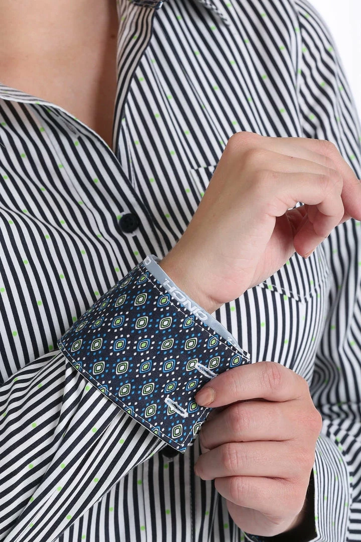 Cinch Fire Resistant Clothing Men’s Lightweight Light Blue, Navy And White Stripe FR Button-Down