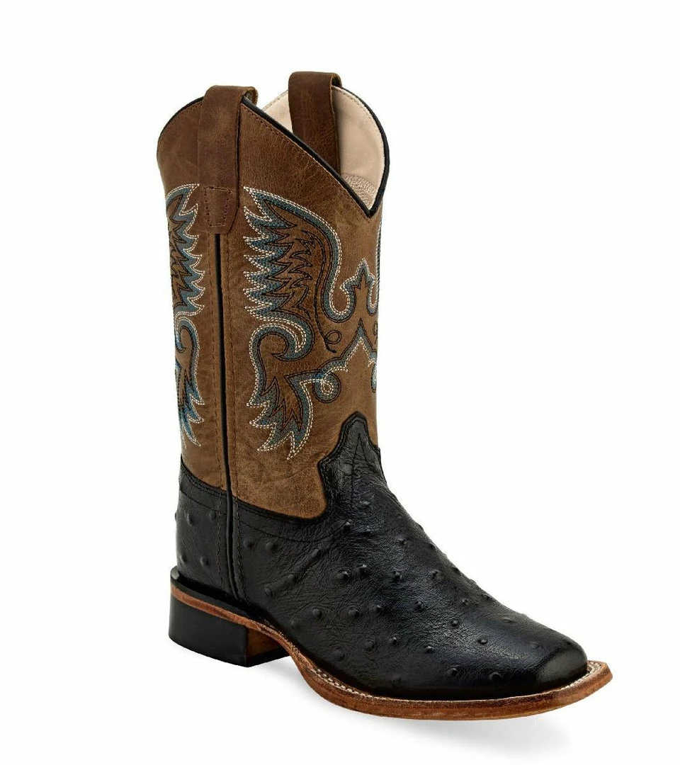 Kids Boots Kid’s Jama Black Ostrich Square Toe Boot