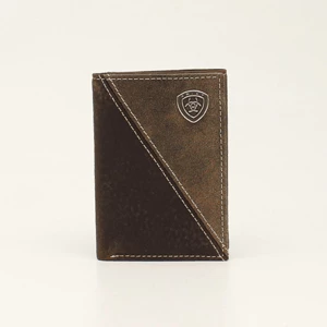 M & F Ariat Trifold Brown Diagonal Shield Wallet