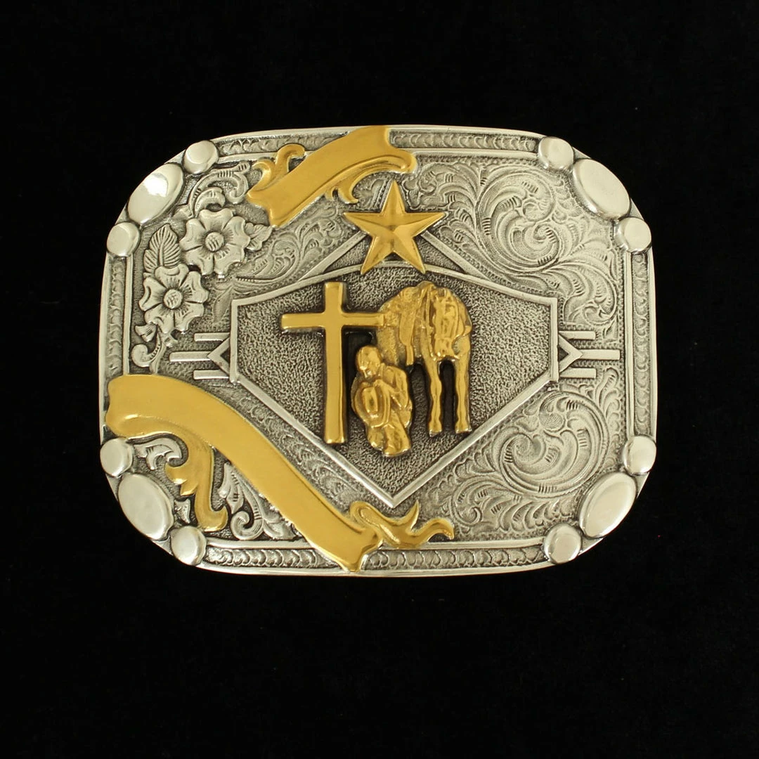 M & F Belt Buckles Nocona Cowboy Prayer Belt Buckle