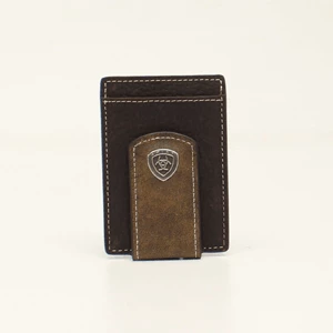M & F Wallets Ariat Diagonal Brown Money Clip Card Case