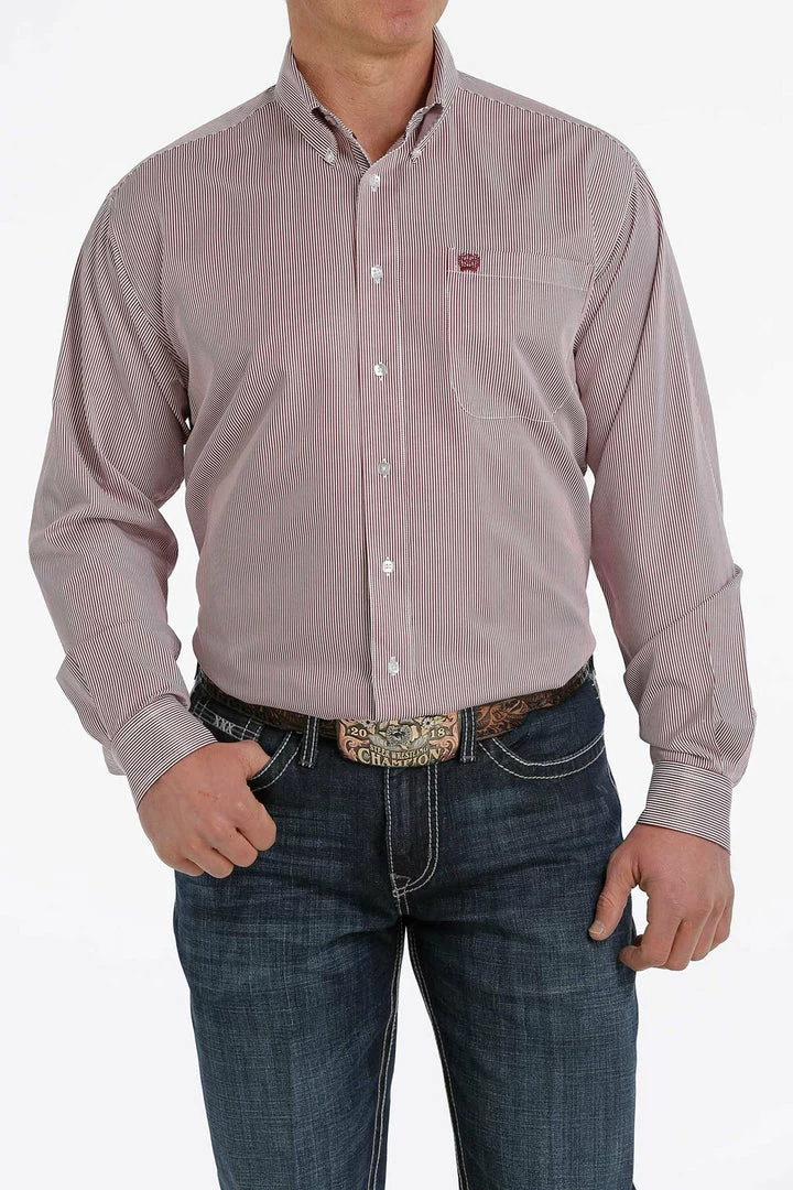 Men’s Cinch White Stripe Long Sleeve Button Down Shirt