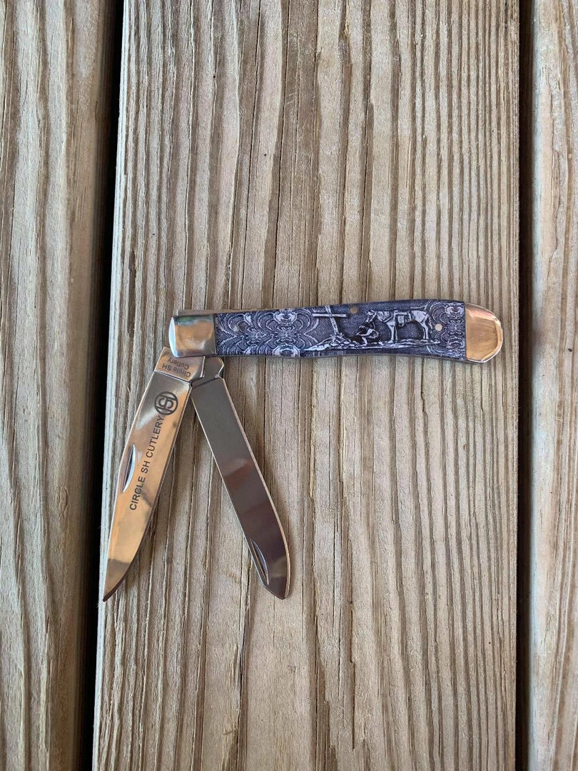 Western Fashion Knives 4″ Trapper Cowboy Praying