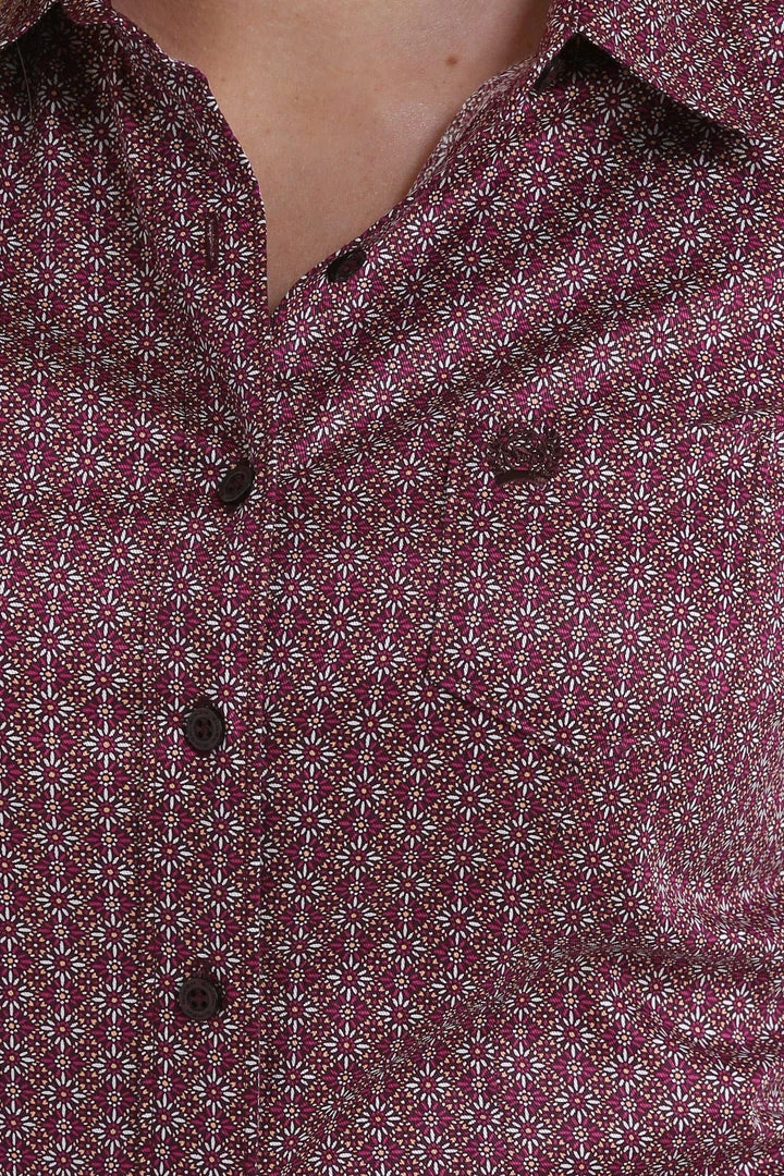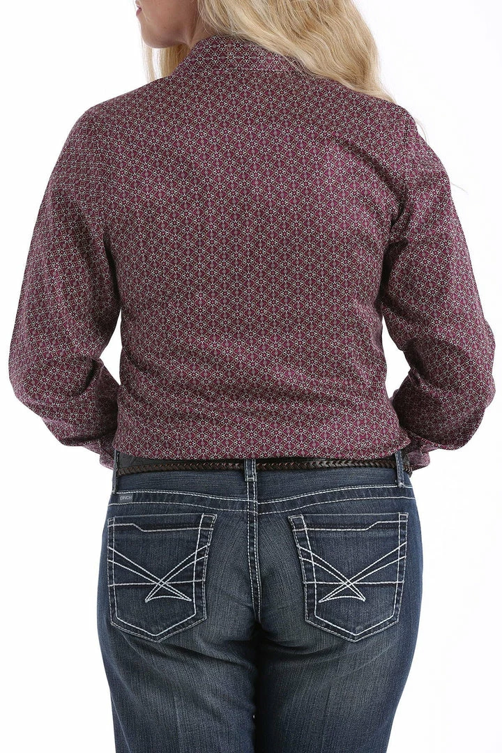 Comfortable and great looking ladies long sleeve shirt from Cinch in a pretty cranberry print
